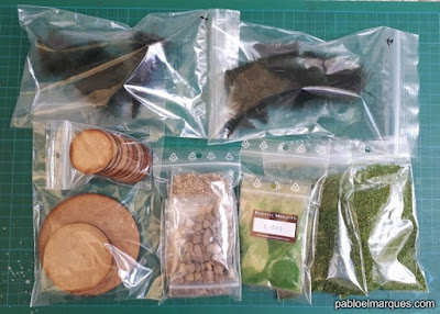 También dos bolsas de césped ferroviario para 'flockear' los pinos.... o para lo que tu quieras :-P